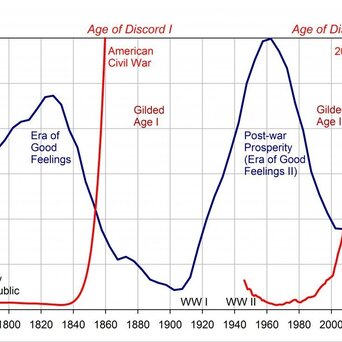 “在2025年之后的某个时间点,美国将穿越一道巨大的历史关口,其重要性堪比美国独立战争、内战,以及大萧条和第二次世界大战……发生灾难的风险极高。国家可能会爆发叛乱或国内暴力,地理上四分五裂,或者屈从于威权统治。那时,人们忙着庆祝互联网的诞生和全球化的红利,没人相信冬天会来。”